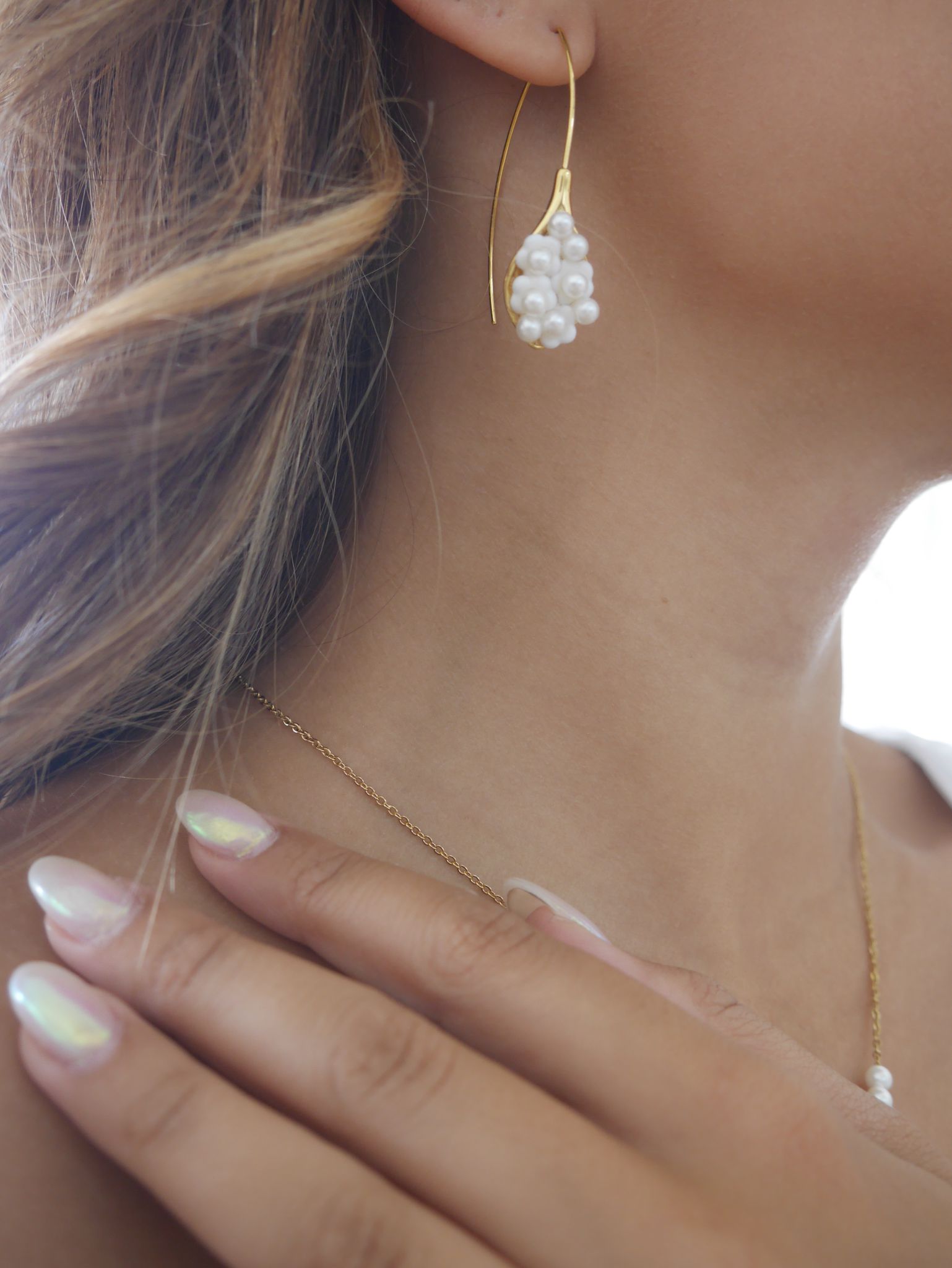 Todos os produtos desta coleção são elaborados à mão, com materiais moldados e delicados como cerâmica fria, aço inoxidável, ródio, missangas e pedra de água.