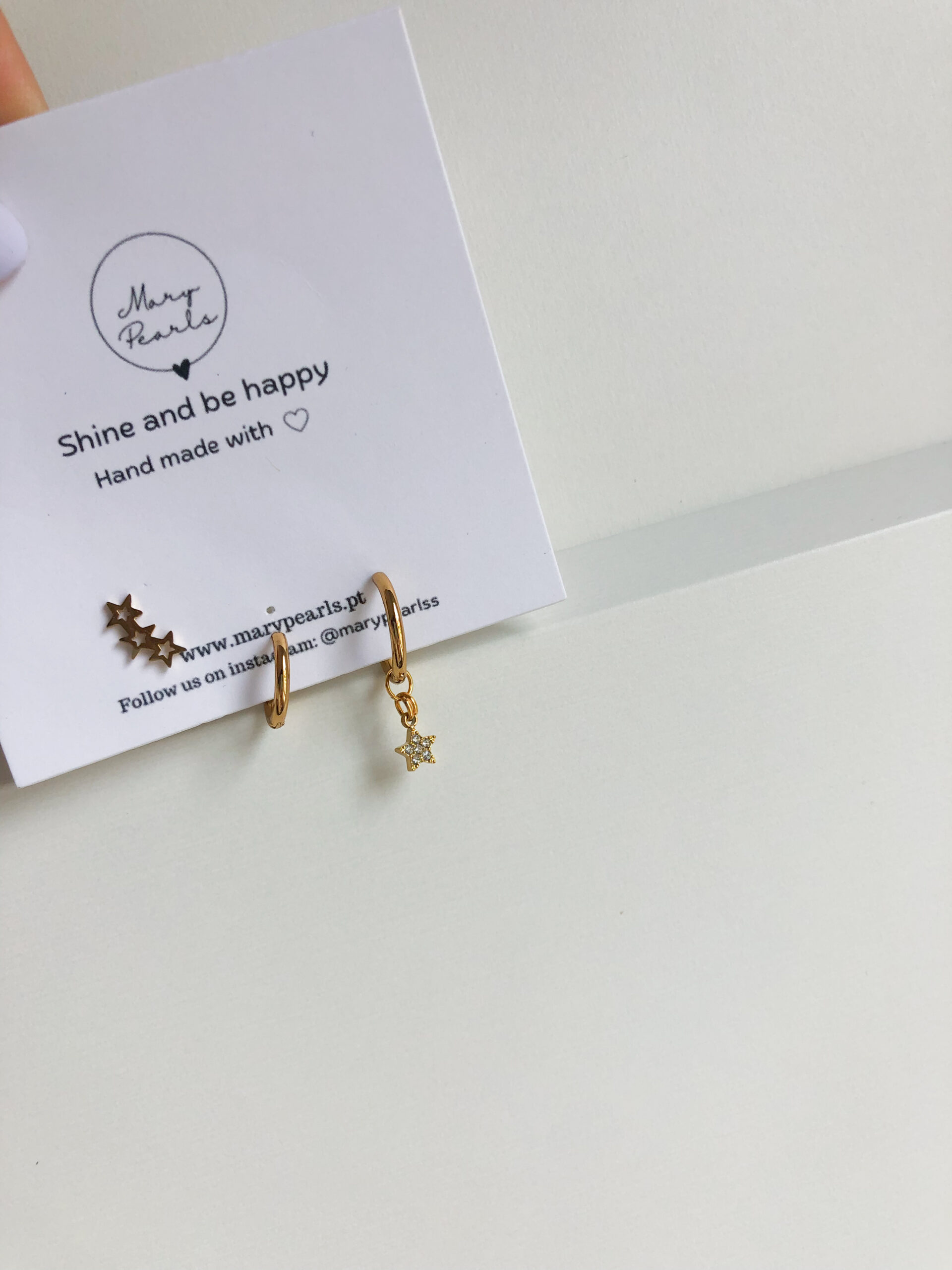 Um conjunto de três brincos com estrelas oferece um toque celestial ao visual, combinando misticismo e elegância de forma harmoniosa.