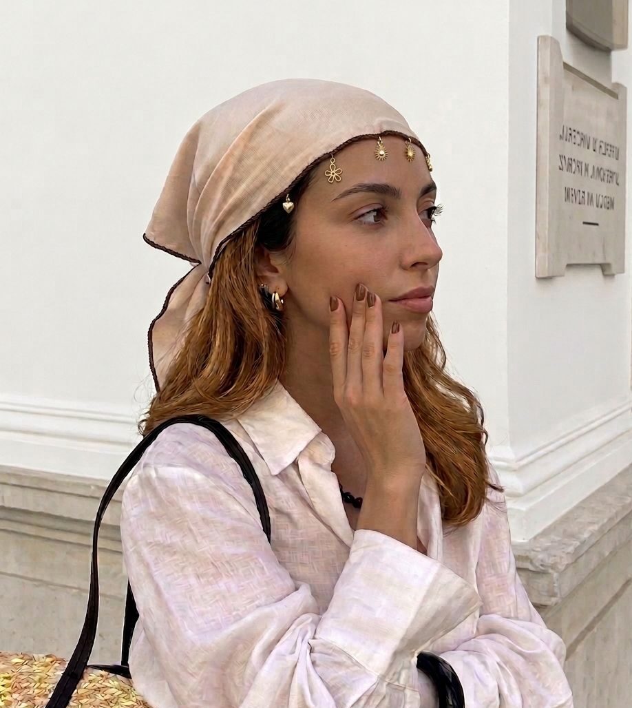 Dá um toque único ao teu look com o nosso lenço com charms, uma peça versátil e cheia de personalidade.
